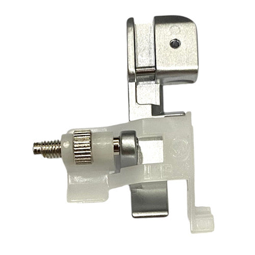 Master the art of invisible hemming with this specialized blind stitch foot designed for your Brother overlocker. This precision attachment streamlines the blind hemming process by simultaneously trimming, finishing, and securing hems in a single pass—eliminating the need for multiple steps. While blind hemming requires skill and refinement, this foot significantly reduces the learning curve and delivers professional results. Compatible with Brother model 2504D. Product code: X76590002 / SA214AP.